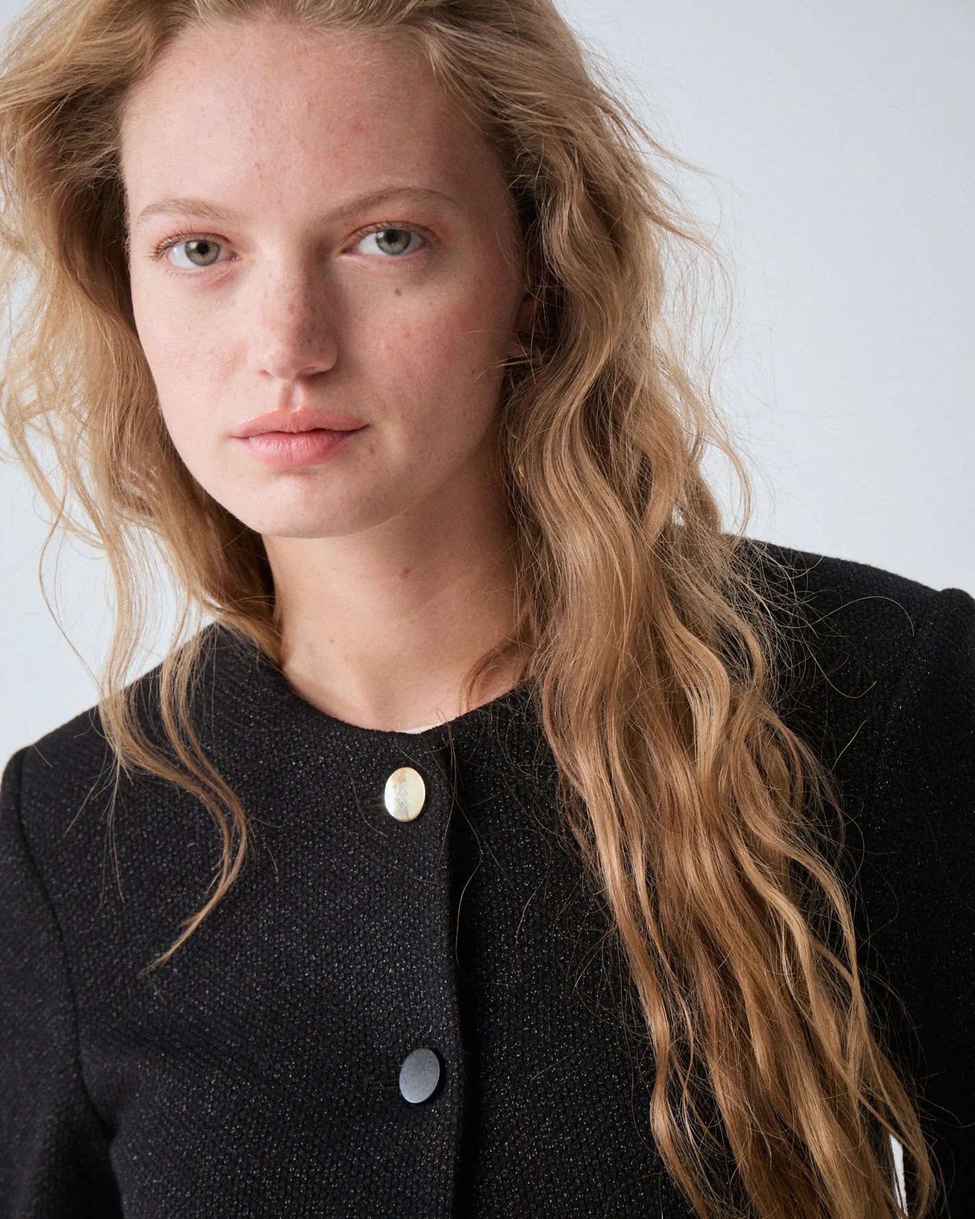 Chaqueta clásica forrada, confeccionada en tejido tramado con lurex.